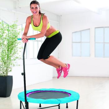 Tot ce trebuie sa faci este sa sari si vei intra in forma fizica dorita prin consum de energie. Acest model are diametrul ramei metalice de 108 cm, iar suprafata sintetica pentru sarituri are un diametru de 88 cm. Aparatul are o greutate de numai 38 Kg si nu ocupa mult loc. Inaltimea ghidonului pentru maini este ajustabila, de la minim 70 la maxim 106 cm. Acest model fiind construit din materiale de buna calitate este rezistent la greutati corporale de pana la 120 Kg. Centrul de greutate al aparatului are o baza de sustinere ferma cu dispozitive antiderapante ce nu permit deplasarea trambulinei in timpul antrenamentului. Aparatul se foloseste in felul urmator: Te urcati pe suprafata trambulinei tinandu-te de ghidonul de sprijin si cu ajutorul propriei fortei data in mod gradat de picioare asupra suprafetei elastice reusiti sa faceti o serie de sarituri pentru o viata mai sanatoasa.
