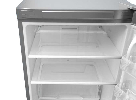 Usa frigiderului reversibila cu maner vertical cilindric cu deschidere spre dreapta este echipata cu 4 suporturi fixe pentru o compartimentare specializata ca de exemplu: In primele doua rafturi specializate pentru depozitarea de oua si diverse pachetele cu produse alimentare. Al trei-lea raft specializat pentru depozitarea de recipiente din sticla sau alte recipiente cu inaltime medie. Si ultimul raft Multi Task Zone cu capac rabatabil, folosit pentru depozitare de 5 sticle de 2 litri cu inaltime peste medie, sau sa depozitam si alte alimente in deplina siguranta.