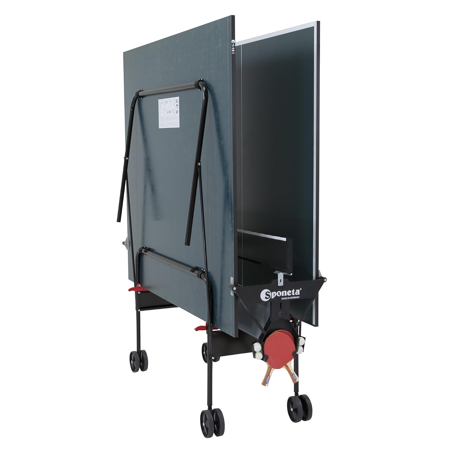 Atunci cand pasiunea pentru tenisul de masa este mare e cazul sa iti achizitionezi o masa de tenis profesionala pe care o poti folosi in partidele cu prietenii tai ori de cate ori doresti. In acest caz iti recomand masa de tenis Sponeta S1-12i pentru interior ca fiind o alegere interesanta atat ca pret cat si din punct de vedere al modului in care aceasta se prezinta. Sponeta nu este rezistenta la radiatiile solare la caldura si la umiditate (spatiu cu umiditatea relativa mai mare de 60%) fiind potrivita numai pentru incaperile uscate. Este o masa de top la capitolul de comercializare si incorporeaza destule facilitati de ansamblare pe un schelet stabil cu un sistem automat de pliere si deplasare. Acest model este perfect pentru incepatori. In plus acest model se poate folosi si in pozitie semi-inchisa pentru un antrenament solo.