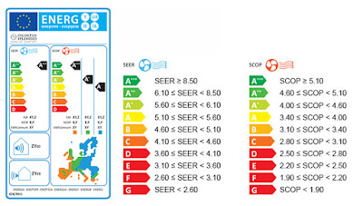 Indicii SEER şi SCOP măsoară consumul anual de energie şi eficienţa în timpul unei utilizări zilnice, normale. Pe termen lung, aceste două valori iau în considerare fluctuaţiile de temperatură şi perioadele, în modul aşteptare, pentru a furniza o indicaţie clară şi fiabilă a eficienţei energetice normale, pe durata unui întreg sezon de încălzire sau răcire.