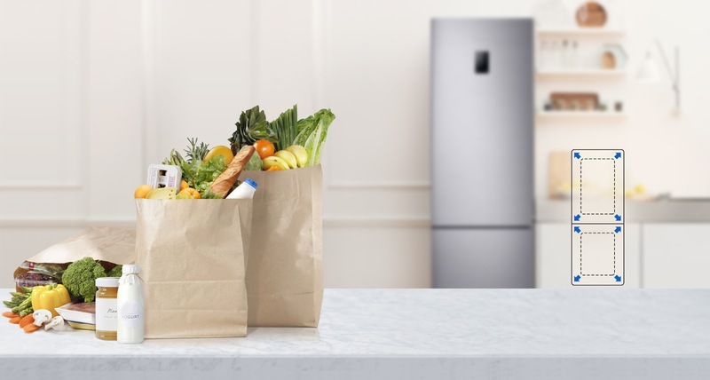 Spatii bine delimitate tehnic – Fiecare ingredient sau preparat are propriul loc in noua combina frigorifica datorita sistemului CustomFlex. Spatiul de depozitare poate fi ajustat in functie de nevoile dumneavoastra. Puteti schimba, muta si inlocui toate elementele după bunul plac. Aparatul detine tehnologia Space Max Technology ce consta intr-un perete conceput foarte subtire fara spatii proeminente, ce creeaza o capacitate interna mai mare, fara a sacrifica eficienta energetica.