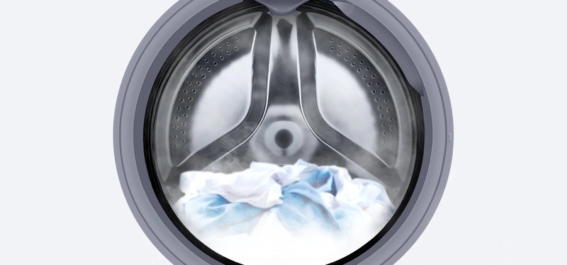 Grila formata din cele 15 programe de spalare si de uscare este usor de accesat si intuitiva si cuprinde majoritatea optiunilor disponibile pe o masina de spalat si de uscat. Incarcarea cu rufe a masinii de spalat poate varia in functie de volumul sau tipul tesaturii. Datorita sistemului automat de reglare a consumului de apa, aportul de apa este ajustat electronic in functie de cantitatea si tipul rufelor, pentru obtinerea celor mai bune performante de spalare si consum energetic. Acest model are prevazut o rezistenta electrica ceramica Ceramic Heater, avand mai putina depunere de calcar pe rezistenta, ce asigura o mai buna protectie impotriva coroziunii. Tamburul cu sistem de iluminare, cu margini finisate in forma de diamant, este este dotat cu tehnologia Quick Drive ce reduce timpul de spalare cu pana la 50% iar utilizarea de energie electrica cu 20%, fara a compromite performanta de curatare. Acest tambur unic cu tehnologia Q-Drum are partea din spate mobila, ce actioneaza ca un pulsator, miscand apa in directii diferite fata de miscarea normala a tamburului, asigurand prin barbotare o spalare rapida, eficienta si delicata a hainelor. Acest model a fost testat fata de o masina clasica rezultand economi de timp in ciclul de spalare de 50% la modul de spalare bumbac la 40℃, la incarcare partiala. Performanta de spalare la acest test este cuprins intre ±3% si cu pana la 20% economie de energie in acelasi ciclu de spalare, bazat pe date de testare Intertek.