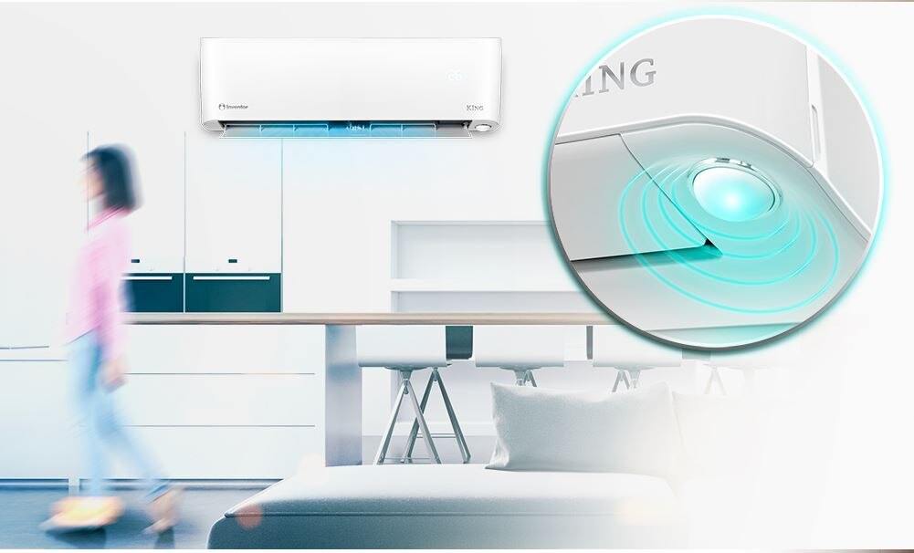 Noua gama King, din care face parte si modelul King 12000 BTU, K1VI32-12WiFi cu capacitate de 12000 Btu/h, revolutioneaza consumul de energie electrica multumita clasei A+++ pe toate zonele climaterice, asigurand performanta maxima chiar si in cele mai dure conditii. Folosind acest AC vei reduce costurile de operare cu ajutorul functiei de control prin Wi-Fi. Noua gama King impresioneaza si prin tehnologia de ultima ora integrate in Detectorul de Miscare, care contribuie la mentinerea temperaturii si reducerea consumului de energie electrica. Multumita distributiei uniforme a fluxului de aer pe o distanta de 10m, te vei putea bucura de conditii excelente in orice punct al camerei si de un mediu sanatos, fara bacterii sau mirosuri neplacute, multumita ionizatorului integrat si al filtrului cu tripla actiune. Stratul de protective Golden Fin si banda auxiliara de Incalzire a compresorului, asigura extinderea duratei de folosire a aparatului si asigura performante excelente la Incalzire, chiar si la temperature de -30°C.