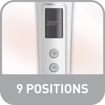– 9 trepte de temperatura (130°C – 220°C) ajustabile in functie de tipul tau de par;