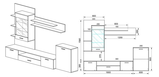 Acesta prezinta un design special, aerisit ce da senzatia de mai mult spatiu, dar in acelasi timp ofera numeroase optiuni pentru pastrarea lucrurilor personale care conteaza pentru tine, la interior si exterior. Corpurile geometrice amplasate in pozitii neasteptate creeaza un efect vizual deosebit in living. O viziune plina de creativitate si masuratorile corecte transforma livingul intr-un spatiu al inovatiilor de design, in care utilitatea si confortul merg mana in mana. Geometria este cea care ne ajuta sa avem o mobila de living moderna estetica, dar cu multiple solutii de stocare. Irim Clement plaseaza in mijloc zona dedicata pentru televizor, are un set de rafturi expandate la inaltime, si alte cateva dulapuri adiacente in partea de jos. Acesta este compus din urmatoarele corpuri: