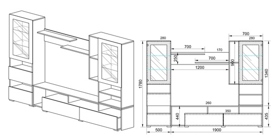 - Vitrina 50 x 28 x 178 cm;
