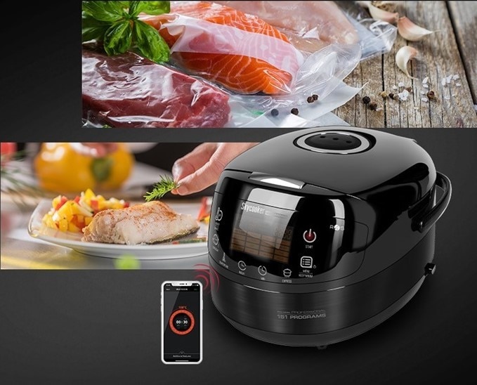 Nu e nevoie sa intorci nimic, la interior creeandu-se o densitate uniforma care este preparata in acelasi timp. In cazul mancarurilor mai complexe, poti stabili in programul de lucru al aparatului etape de lucru, in care acesta sa se opreasca pentru a adauga si alte elemente care sa dea gust mancarii tale. La pornire, capacul este blocat automat astfel incat sa fi protejat de aburul fierbinte de la interior. Cu functia programare intarziata, poti stabili ora la care aparatul sa porneasca lucrul, astfel incat atunci cand toata familia se strange la masa, mancarea sa fie gata si calda. Deasemenea un alt mod inedit prin care poti pregati alimentele este cel SOUS-VIDE, un mod prin care gatirea prin abur la temperaturi ridicate reduce timpul necesar pana cand acestea sa fie gata pentru a fi servite. Gatirea in vid (sau ”sous-vide” in franceza) este o metoda de gatire in care carnea sau legumele si condimentele sunt puse intr-o punga vidata si apoi sunt gatite la temperaturi fixe – intre 54°C si 84°C in functie de tipul de aliment care se doreste a fi gatit.
