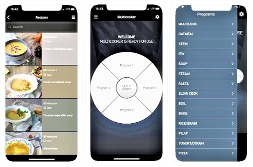 Aplicatia denumita sugestiv „Ready for Sky” este ca un asistent care te ajuta sa alegi cea mai buna optiune atunci cand vine vorba de a folosi aparatul de gatit. Poti sa alegi reteta, sa setezi programul potrivit sau sa modifici parametrii de gatire presetati, apoi incrediente, ca in final sa dai start intregului proces. Fiecare mancare in parte este descrisa minutios in privinta incredientelor, si a aportului caloric. Daca iti place ceva din cartea de bucate, poti rula programul de gatire al felului de mancare ales prin apasarea tastei Start.