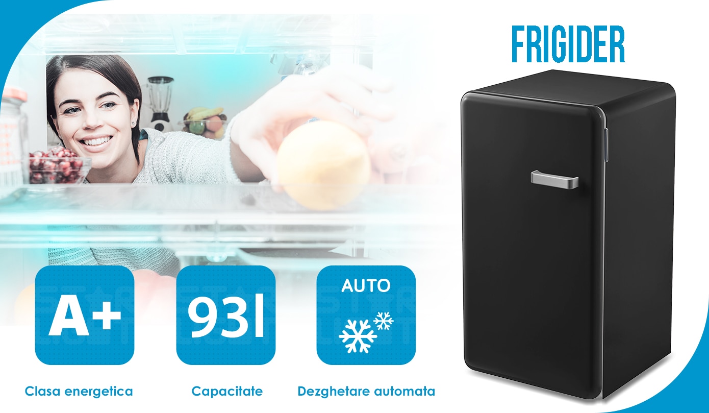Star-Light FTTM-93RBL, produs 100 % romanesc, este un frigider cu o sigura usa de dimensiuni medii, ce gazduieste la interior un spatiu de depozitare de aproximativ 91 litri. Acesta este ideal pentru orice familie mica, care nu are inca un buget prestabilit pentru un model mai scump, sau pentru a fi achizitionat pentru locatii sezoniere cum ar fi case de vacanta sau camere de hotel. Este o varianta eficienta, ce stabileste un nivel optim de consum, conform clasei energetice A+. Star-Light FTTM-93RBL afiseaza un design atractiv care a se nota se doreste a fi unul retro. Este un design reusit si in acelasi timp interesant, ce da o nota originala camerei in care va fi folosit. Culoarea negru mat, este una conforma cu noile tendinte tot mai intalnita in cazul aparatelor electrocasnice.