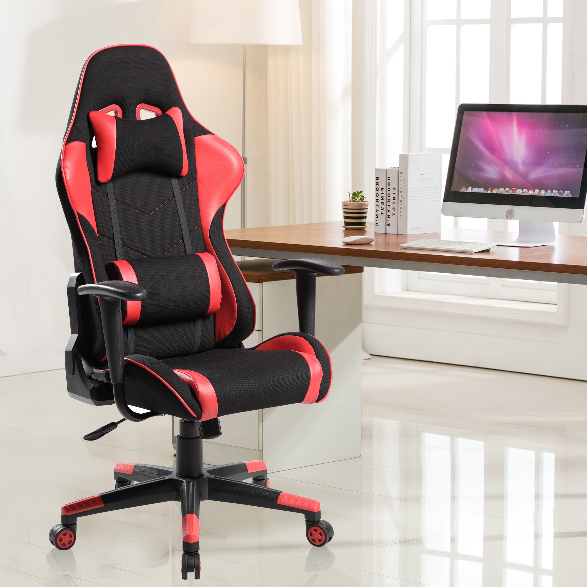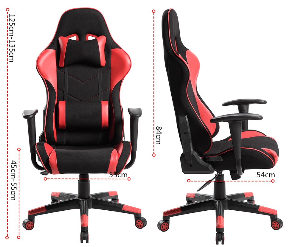 Designul scaunului de gaming este inspirat din cursele auto, fiind construit pentru a oferi confortul dat de scaunul unei masini sport oferind senzatia de libertare, comoditate pentru a petrece ore in sir in fata calculatorului. Materialele atent alese, consta in piele ecologica, lasa corpul sa respire, suprafetele fiind construite astfel incat sa lase loc de trecere a aerului, atat la sezut cat si zona de spate. Toate elementele ce intra in componenta sa au ca scop principal asigurarea unui confort necesar optim pe toata durata sederii. Bratele de sprijin sunt robuste si se pot regla pe inaltime, conferind siguranta necesara unei utilizari indelungate. Scaunul este dotat un mecanism cu sistem hidraulic ce permite reglarea in inaltime a sezutului, pentru o pozitie cat mai ergonomica la birou. Suportul lombar reglabil este o caracteristica foarte importanta, ea oferindu-va o pozitie corecta a spatelui. Este necesar ca spatarul sa urmeze curbura naturala a coloanei vertebrale si sa ofere suportul necesar. De asemenea, spatarul beneficiaza de sistem de blocare in pozitia dorita, pentru a preveni balansarea inutila. Inaltimea sa este ajustabila manual, in intervalul 45 – 55 cm. Dimensiunile exacte pot fi studiate in detaliu conform cu fisa tehnica urmatoare: