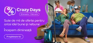 Ziua de marti 30 ianuarie pare sa fie una cu noroc, deoarece daca doresti sa faci achizitii importante de la eMAG acestia initiaza o noua campanie de reduceri intitulata sugestiv Crazy Days. Asa cum intuiam, sunt 3 zile de reduceri la sute de mii de produse, perioada campaniei fiind intre 30 ianuarie si 1 februarie 2024. E un moment oportun pentru a-ti revizui lista de favorite si a verifica daca unul din produsele pe care le urmaresti de mult timp beneficiaza de un discount semnificativ. Iti recomand sa verific intreaga lista de oferte unde poti descoperi anumite cadouri potrivite pentru tine si familia ta, sau jumatatea ta mai ales ca vine si Valentines Day. Startul campaniei de reduceri de Crazy Days are loc dimineata la primele ore, asa ca pregateste-te din timp pentru eveniment.
